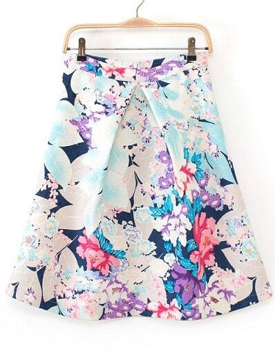 Blue High Waist Leaves Print Skirt
