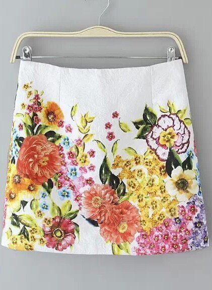 White Floral Bodycon Skirt